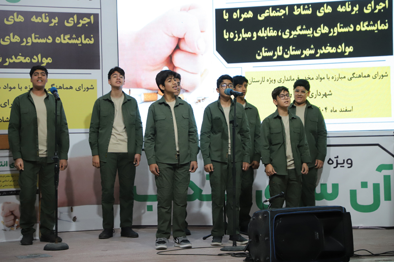 اجرای برنامههایی با محور نشاط اجتماعی توسط گروه سرود دانش آموزی و گروه سرود طاها، پخش کلیپ عملکرد شورای هماهنگی مبارزه با مواد مخدر لارستان، گزارش خبری کشف و دستگیری قاچاق مواد مخدر صنعتی در استان فارس و کلیپ های آموزشی و فرهنگی در این زمینه، از دیگر برنامه های این مراسم بود.
