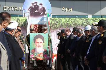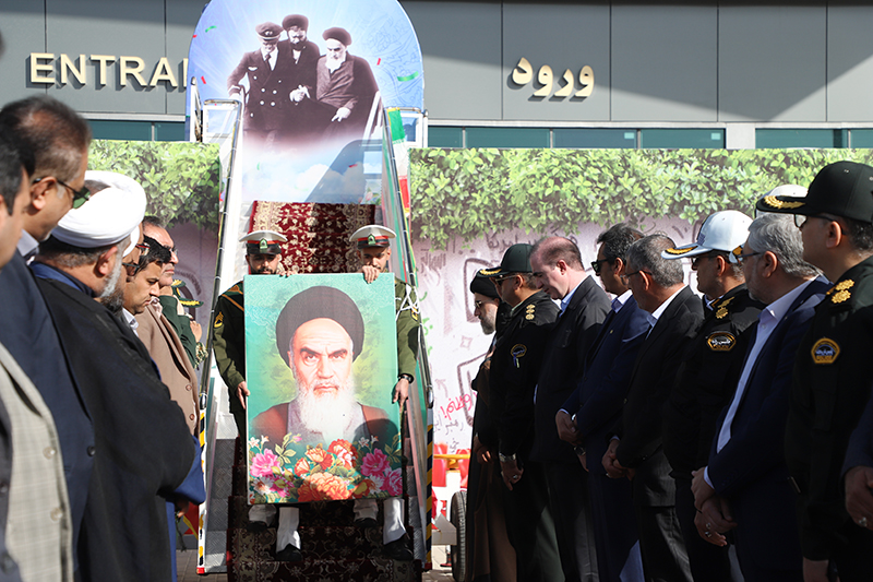 در بخشی نمادین از برنامه، تمثال بنیان‌گذار جمهوری اسلامی ایران، حضرت امام خمینی (ره)، به یاد روز تاریخی بازگشت این معمار کبیر انقلاب به میهن، از پلکان هواپیما پایین آورده شد؛ صحنه‌ای که یادآور یکی از ماندگارترین لحظات تاریخ معاصر ایران بود.