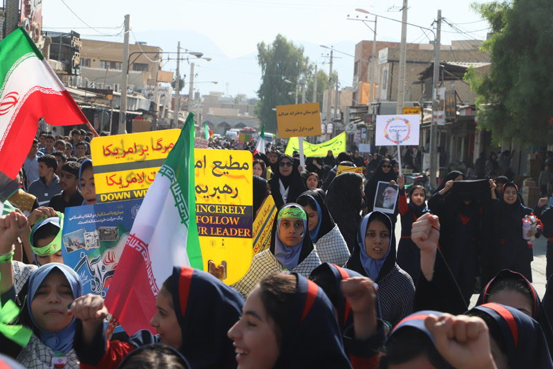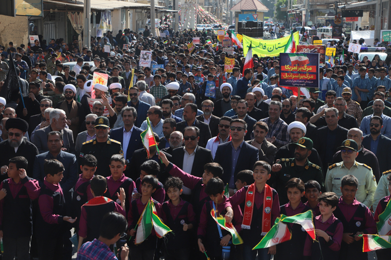 این راهپیمایی از ساعت ۹ صبح در چهارراه پیروزی شهرقدیم لار آغاز شد و شرکت‌کنندگان با در دست داشتن پلاکاردها و سردادن شعارهای انقلابی، انزجار خود را از سیاست‌های استکباری جهان اعلام کردند.