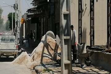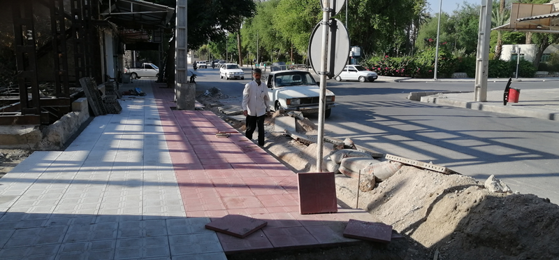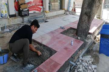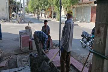 اجرای فاز نخست موزائیکفرش پیادهراه آیتالله خامنهای شهرقدیم لار