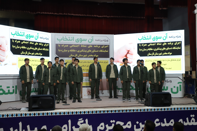 اجرای برنامههایی با محور نشاط اجتماعی توسط گروه سرود دانش آموزی و گروه سرود طاها، پخش کلیپ عملکرد شورای هماهنگی مبارزه با مواد مخدر لارستان، گزارش خبری کشف و دستگیری قاچاق مواد مخدر صنعتی در استان فارس و کلیپ های آموزشی و فرهنگی در این زمینه، از دیگر برنامه های این مراسم بود.