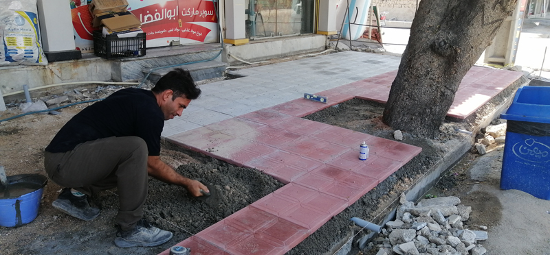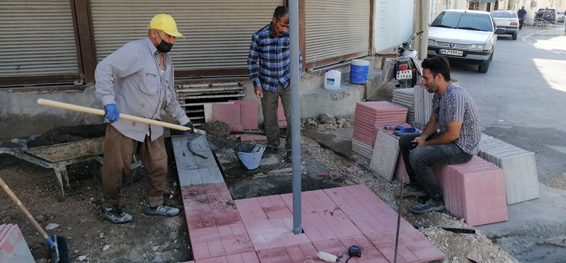 اجرای فاز نخست موزائیک‌فرش پیاده‌راه آیت‌الله خامنه‌ای شهرقدیم لار